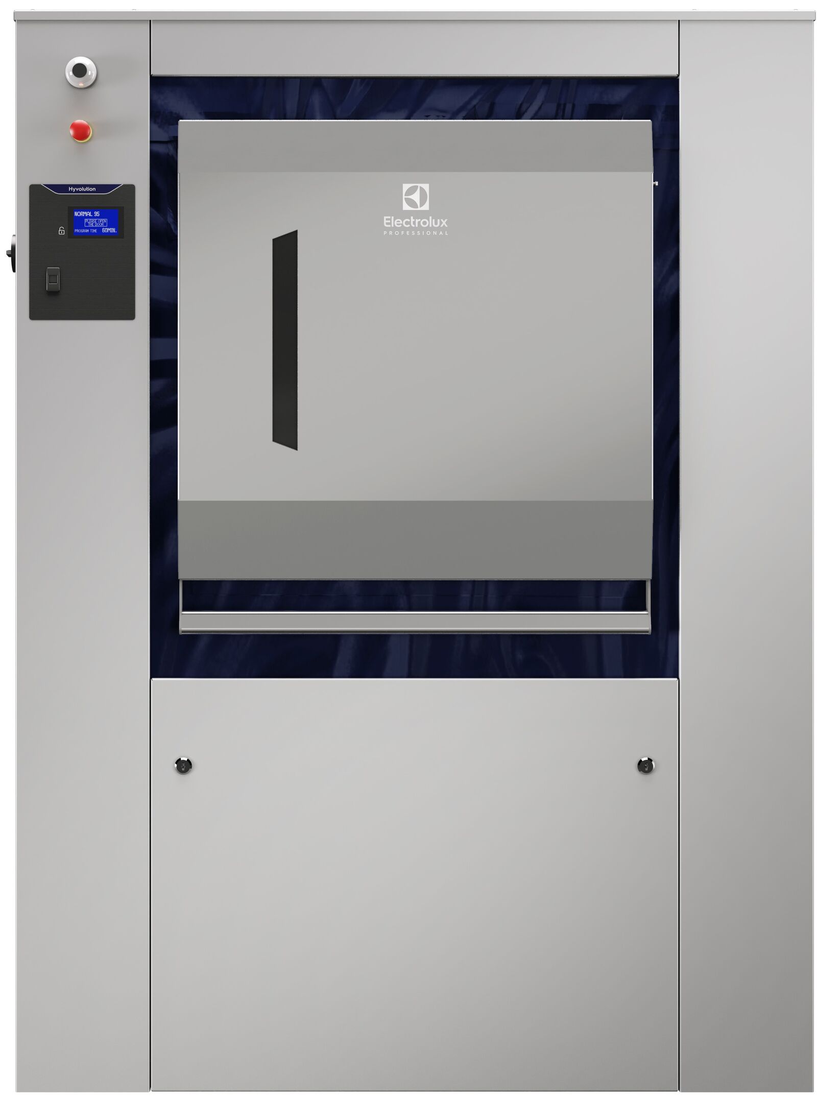 De was wordt aan de ene kant geladen en aan de vieze kant uitgeladen. Daardoor kan de machine in een muur geplaatst worden waardoor vieze en schone was nooit met elkaar in aanraking komen. Zo kan besmettingsgevaar uitgesloten worden.