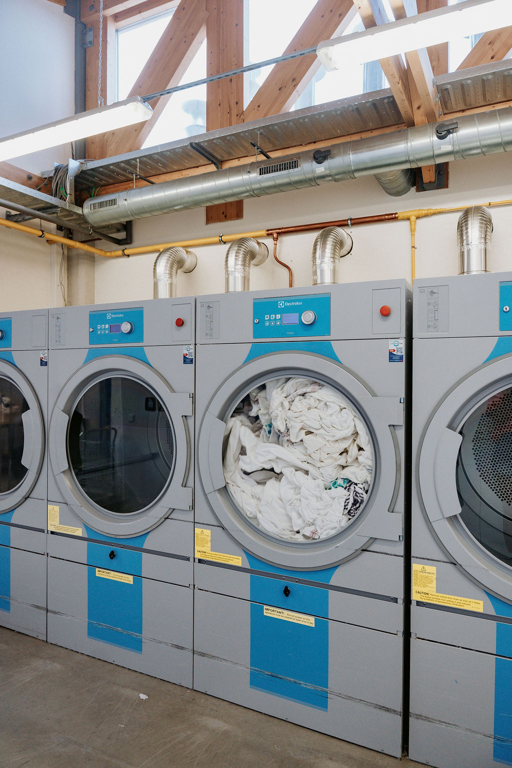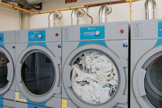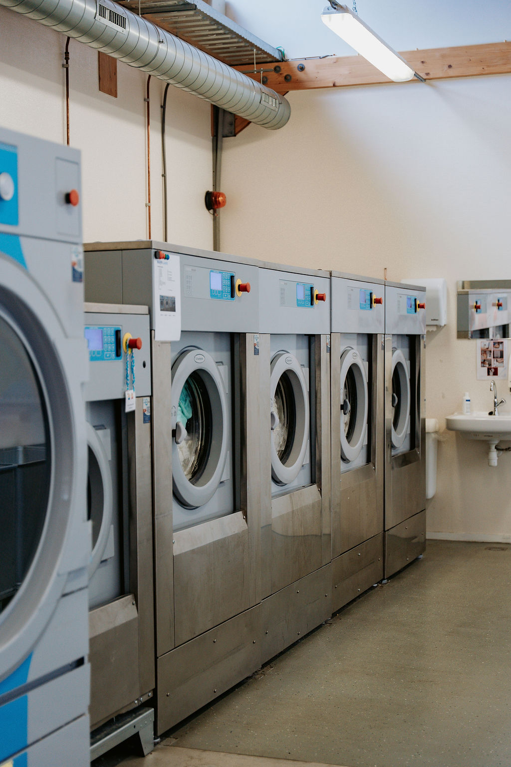 Voor Wasserij De Koppeling hebben wij een mooie, volledig gereviseerde wasserij mogen realiseren. De wasserij is ingericht met hoogwaardige, zorgvuldig gereviseerde Electrolux-machines: vier wasmachines van 24 kg, één wasmachine van 30 kg en één wasmachine van 14 kg. Daarnaast zijn vier drogers van 30 kg en twee mangels geplaatst.